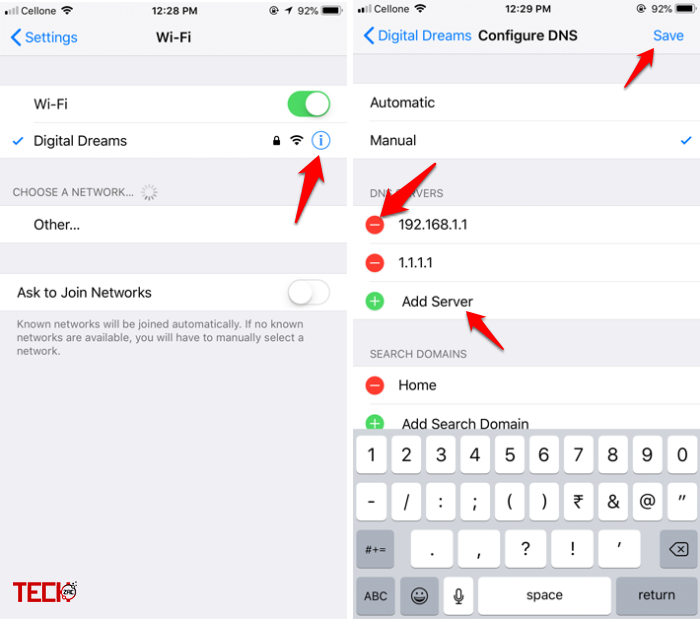 بالمثل ما قمت به في الجزء الخاص في macOS، ف أيضاً هُنا الأمر يتم بسهولة للغاية وبسرعة في تغيير إعدادات ال DNS لديك على الأجهزة التي تعمل بنظام ال iOS.