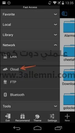 اصبح موقع دروب بوكس “Dropbox” من المواقع التى لا غنى عنها فى تخزين الملفات تخزينا سحابيا و قد يحتاج البعض الى تشغيل اكثر من حساب فى وقت واحد و لكنه لا يجد تطبيق يمكنه من اتمام ذلك ليبدأ بتخزين الملفات بأى من الحسابين او كلاهما فى وقت واحد . فمن خلال تطبيق “Es File Explorer” و ذلك التطبيق مجانى على جوجل بلاى و الذى سوف نقوم باستخدامه لتشغيل اكثر من حساب لموقع دروب بوكس “Dropbox” فى وقت واحد . بعدما تقوم بتثبيت التطبيق ستجد فى اعلى جهه اليسار ايقونه Tap “على شكل ثلاث شرط ” تقوم بالضغط عليها و سوف تفتح لك نافذه تختار منها “Cloud” كما هو موضح بالصوره
