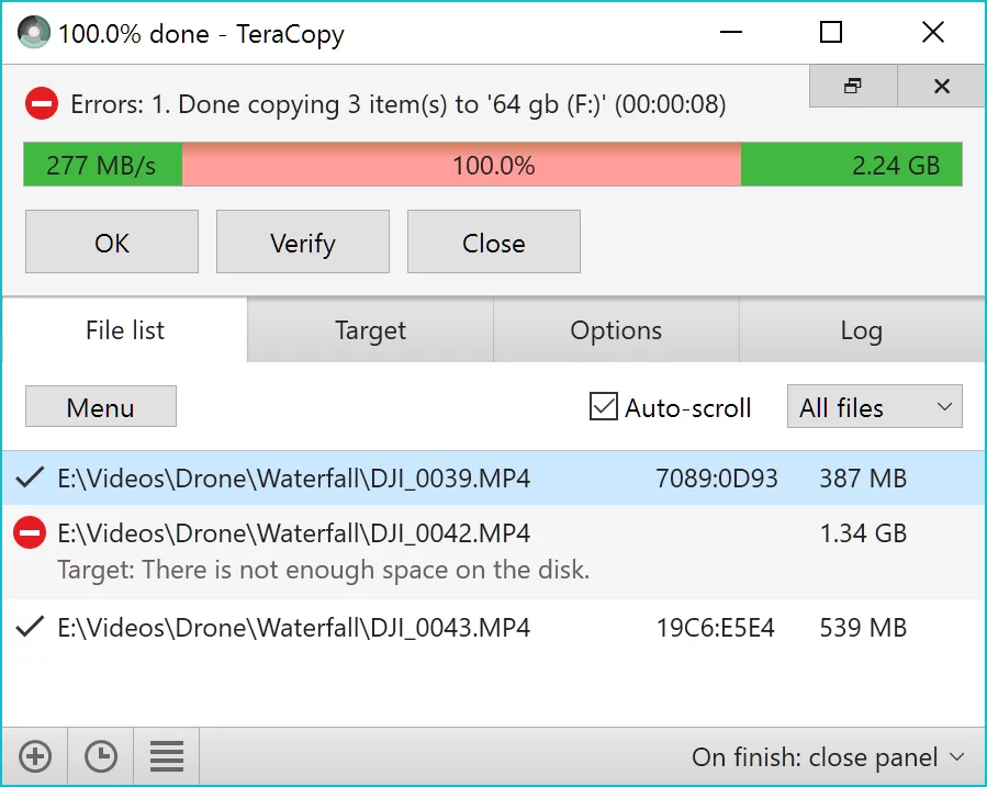 كل ما عليك فعله هو تحديد الملفات التي تُريد نسخها أو نقلها ومن ثم الضغط بالزر الأيمن على رمز النقل بإستخدام برنامج Tera Copy، كما أن البرنامج يقوم أيضاً بإسترجاع الملفات التي قامت بالتلف، وإن كانت غير قابلة للإسترجاع فيقوم البرنامج بتخطيها.