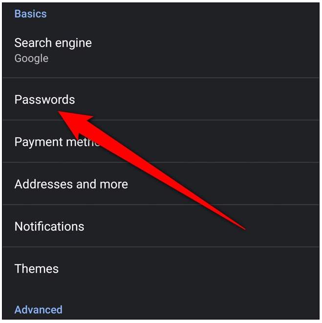 - ستظهر لك قائمة ابحث فيها عن كلمات المرور “Passwords”.