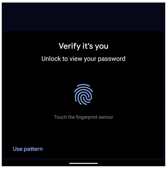 - قبل ان تظهر كلمة السر سيتوجب عليك ان تقوم بالمرور من خلال بصمة الاصبع او النمط حسب ما قمت بتعيينه لحماية هاتفك و بعد ذلك سيتم اظهار كلمة السر .