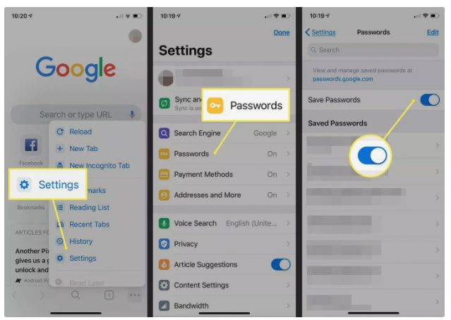 تمكين او تعطيل ميزة كلمات السر المحفوظة في حسابك على جوجل كروم للايفون
