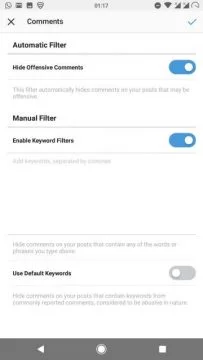 في بعض الأحيان قد تكون التعليقات التي تحصل عليها تعلقات سلبية بشكل كبير , لذلك قد ترغب في تصفيه هذه التعليقات , و لحسن الحظ فأن تطبيق إنستجرام يسمح لك بالقيام بهذا الأمر عن طريق نوعين من الفلاتر , الأول يسمي التصفية التلقائية و هو يستطيع التعرف علي التعليقات المسيئة و مشاركتها و إخفائها , أما النوع الثاني فهو تصفية يديوية و تكون عن طريق إدخال الكلمات التي ترغب في حجبها أو تصفيتها و من ثم سيقوم التطبيق بمنع هذه التعليقات بالكامل .