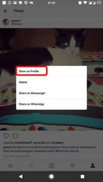 و يمكنك الإطلاع علي المشاركات الي قمت بعمل أرشيف لها من خلال الإنتقال الي الملف الشخصي و الضغط علي زر المشاركات المؤرشفة و من ثم الضغط علي زر الثلاثة نقاط و الضغط علي خيار إطهار في الملف الشخصي .