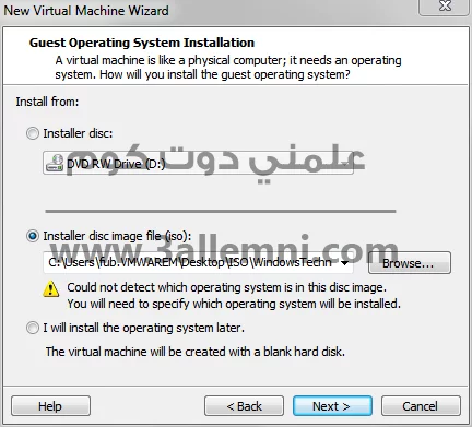 و من خلالها نقوم بأختيار مكان نسخه Iso المتواجده على الجهاز الخاص بك ثم الضغط على Next لتظهر لك نافذه جديده كالتاليه