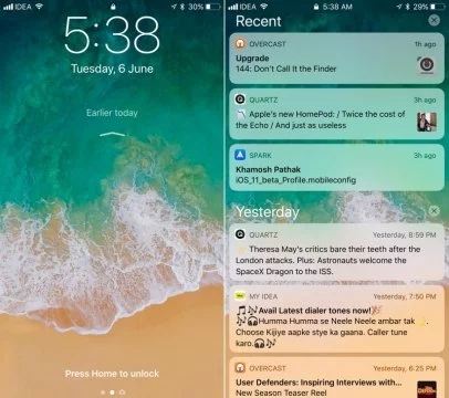 - الان سوف تري قائمة الاشعارات وقفل الشاشة مدمجين