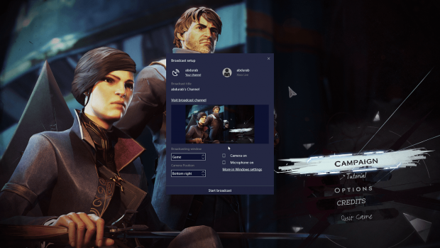 الآن تقوم بتشغيل اللعبة الخاصة بك و من ثم قم بالضغط علي Win Key + G زر الويندوز مع حرف G و سوف يظهر الشريط الخاص بوضع الألعاب و الذي من خلاله تختار Broadcast .
