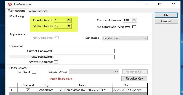 -هذا البرنامج من أهم مميزاته أنه يجعل المستخدم قادرا على قفل شاشة سطح المكتب عن طريق الفلاشة أو رقم سرى