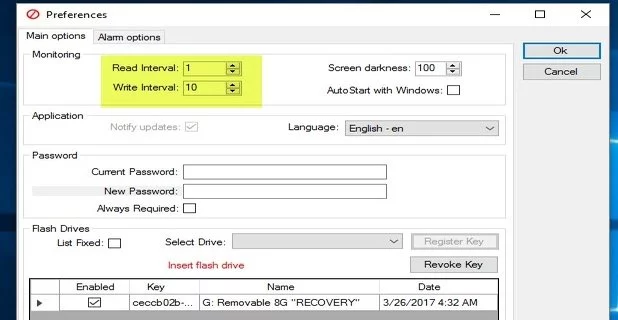 -يجب عليك أن تقوم بتعيين أصغر ما تستطيع من الوقت ليتم غلق جهازك تلقائيا بمجرد نزع الفلاشة من الحاسوب الخاص بك