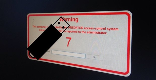 -بعد الأنتهاء من تلك الخطوات السابقة عند نزع الفلاشة الـ USB من الحاسوب سيتم غلق الحاسوب وستظهر شاشة صعيرة سوداء تمكنك من خلالها فتح الحاسب الخاص بك مرة أخرى عن طريق الفلاشة الـ USB أو عن طريق كتابة الرقم السرى الذى قمت بكتابته فى أول خطوة