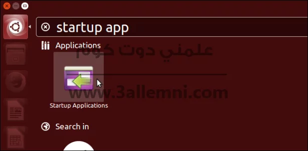 في مكان البحث قم بكتابة ” startup applications ” وستظهر لك الايقونه مثل الصوره بالاسفل قم بالضغط عليها.