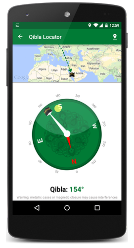 - توجد بة اداة لتحديد اتجاة القبلة اتجاة الكعبة بكل سهوله .