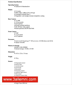 - شاشة IPS LCD بحجم 5.2 إنش ,بدقة FHD 1080p أى “1080×1920 بكسل” ,بكثافة بكسلات 424 بكسل لكل إنش ,و الشاشة محمية بطبقة من جوريلا جلاس 3.