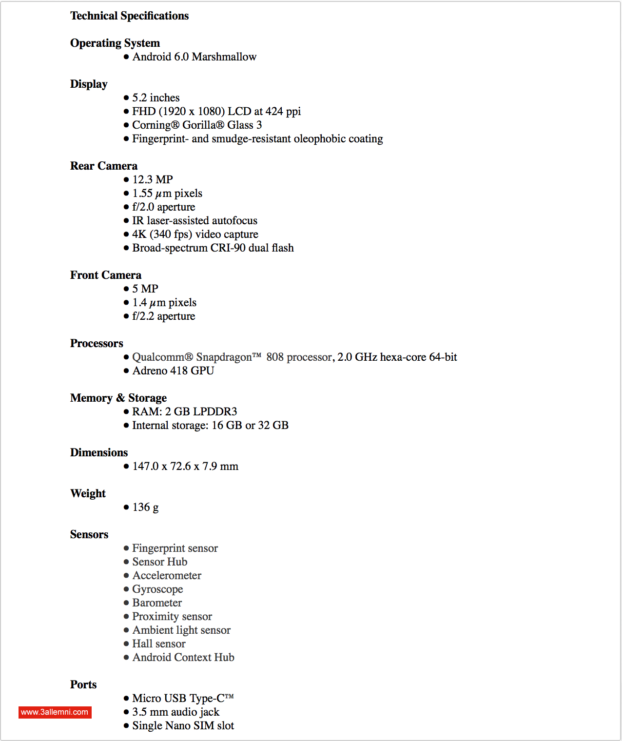- مُعالِج سُداسى النواه من نوع Qualcomm Snapdragon 808 ,يعمل بتقنية 64بت ,و بتردد 2.0 جيجا هرتز ,مدمج معه مُعالِج رسوميات من نوع Adreno 418.