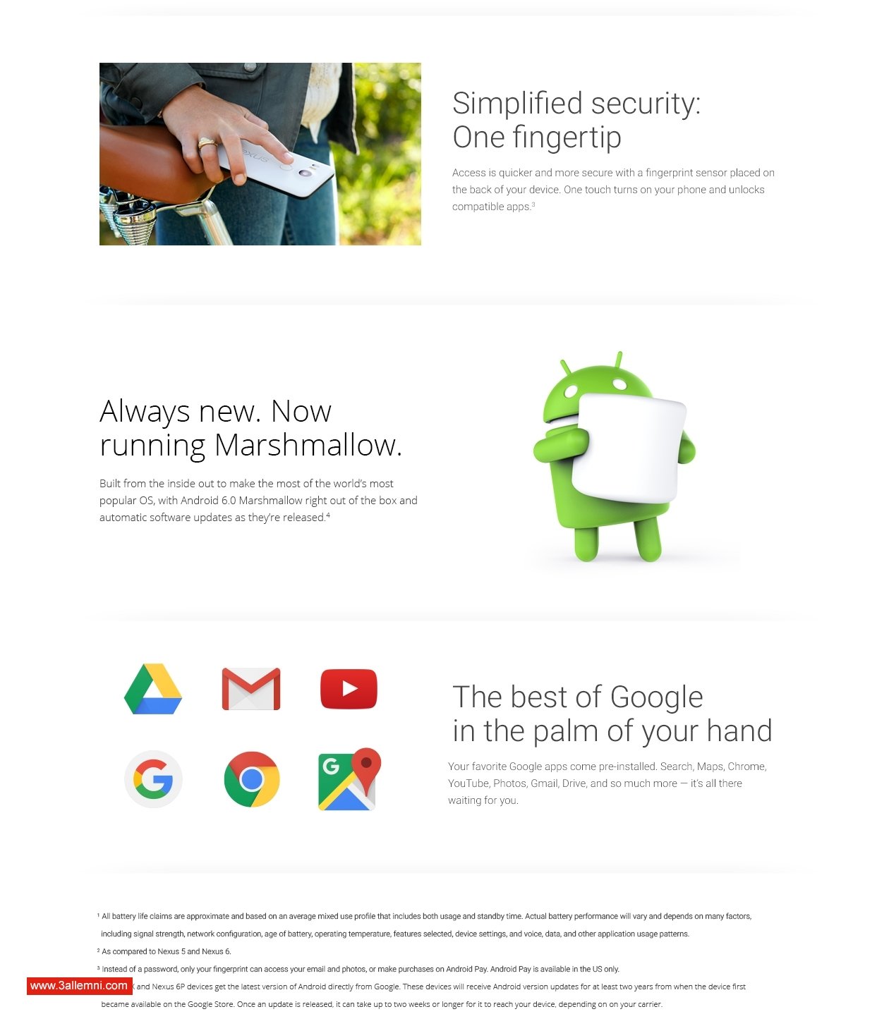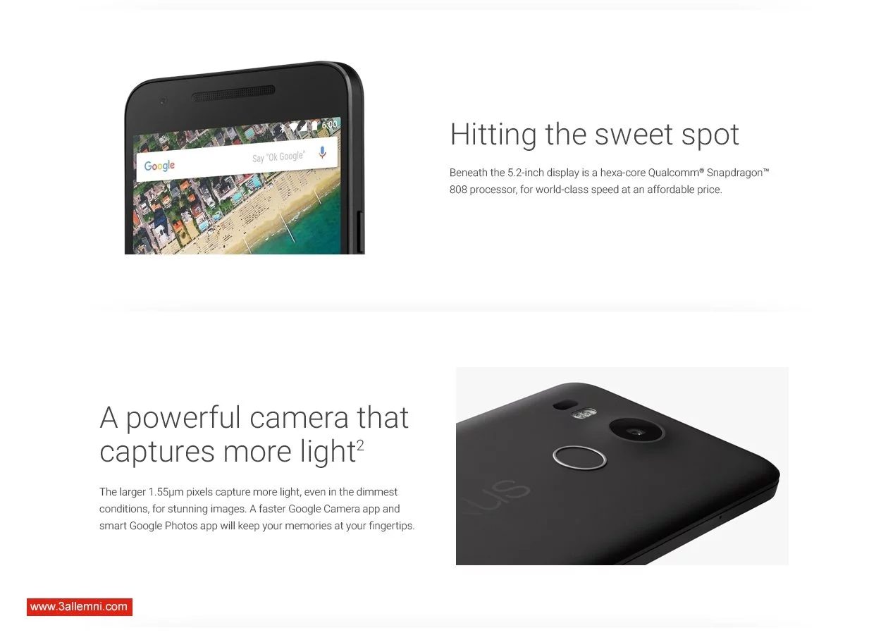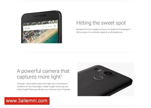 بالنسبة لسعر الهاتف فستبدأ النسخة ذو سعة الـ 16 جيجا بسعر 379$ دولار ,و يحمل ذلك الهاتف زر بصمة الأصابع مثل أخيه الأكبر Nexus 6P.