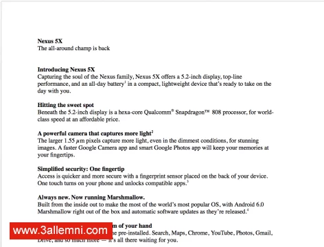 اليوم سيتم الإعلان الرسمى من قِبَل شركة جوجل عن كُلاً من هاتفيها الجديدين من سلسلة الـ Nexus و هم Nexus 6P و قد تحدثنا عنه فى مقالة سابقة و ذكرنا لكم مواصفاته الكاملة ,و هاتف Nexus 5X و الذى تمّ تسريب مواصفاته و سعره و سوف نتحدث عنه بالتفصيل.