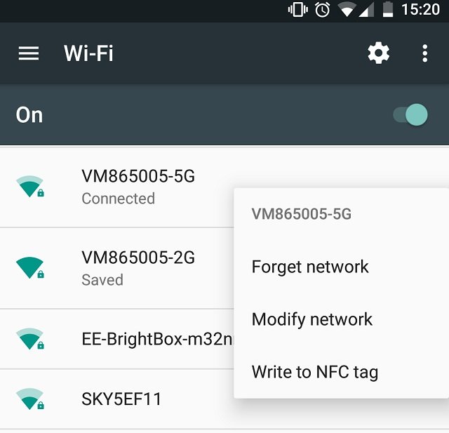 يمكنك استخدام تطبيق Trigger ، أو الضغط لفترة طويلة على شبكة Wi-Fi في “الإعدادات” وذلك في Android 5.0.1 والإصدارات الأحدث منه ، لكتابة معلومات شبكة Wi-Fi في علامة NFC والتي يمكن لأي شخص النقر عليها وسيتم ربط هاتفه على الفور إلى شبكتك.