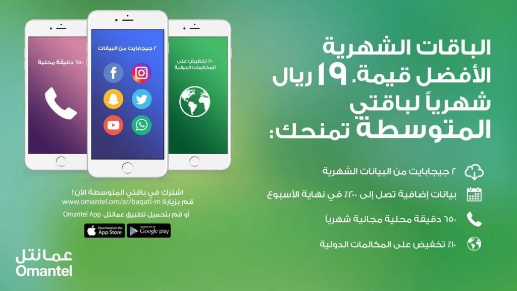 باقات وأكواد شركة عمانتل للاتصالات في سلطنة عمان