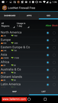 يمكنك منع اتصال التطبيقات ببلدان معينة من خلال اختيار GEO