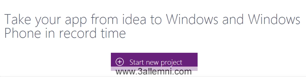 حيث يتمكن جميع باستخدام حساب تابع لشركه مايكروسوفت مثل “hotmail” او “Live” و تقوم بتسجيل عن طريق ذلك الرابط http://appstudio.windowsphone.com/ و بعد ذلك تقوم بالدخول الى “Start New Project”
