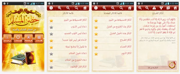 يحتوي هذا التطبيق علي الكثير من الأدعية و الأذكار الواردة في كتاب حصن المسلم و التي لا غني عنها لأي مسلم و التي يمكنك أيضاً إختيار البعض منها في قائمة المفضلة للرجوع إليها في أي وقت بسهولة .