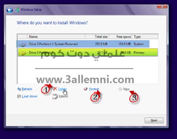 تقسيم الهارد اثناء تنصيب الويندوز بدون فورمات