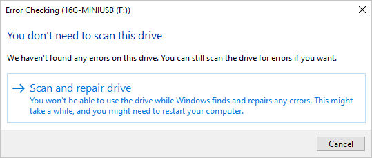 - سيُظهر لك ويندوز خيارات إصلاح الخطأ ، إذا لم تكن هناك أخطاء ، فلا يزال بإمكانك مسح USB لإصلاحه.