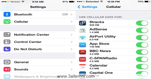 - من خلال خاصية CELLULAR DATA FOR يمكنك فصل الانترنت عن البرامج التي لا تستعملها وتستهلك جزء كبير من الباقه