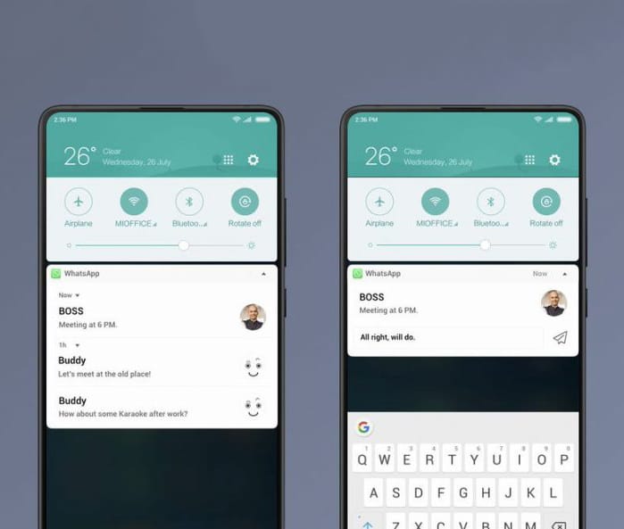 • عندما تصلك رسالة على واتساب قم بفتح لوحة الإشعارات على هاتفك من خلال سحب الشاشة من الأعلى.