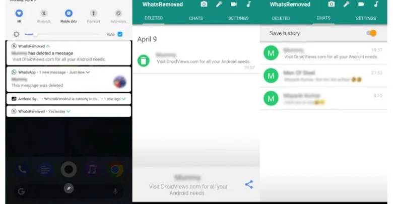 من خلال تطبيق يُدعى WhatsRemoved مُتاح على متجر جوجل Play Store بشكل مجاني، كما أنه ليس بحاجة إلى أن تكون على وضع الروت، ف يُمكنك إستخدامه بشكل تقليدي، ويعمل بطريقة بسيطة للغاية حيث يقوم بإرسال إشعارات إليك عندما تتواجد رسالة تم حذفها على تطبيق واتساب.