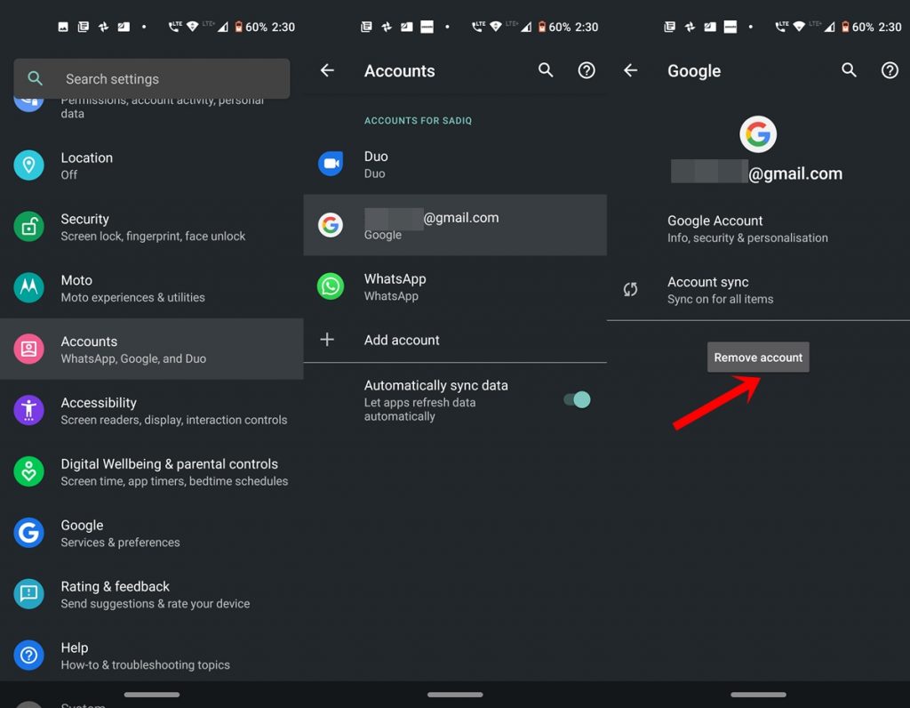 - توجه إلى الإعدادات على هاتفك ثم الحسابات وقم بحذف حساب جوجل.
