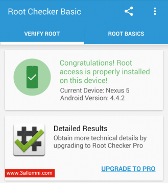 ولكي تتأكد من انه تمت العمليه بنجاح قم بتثبيت تطبيق “Root Checker” وسيظهر لك ان هاتفك به صلاحيات الروت