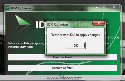 اذا كنت تعاني من بطيء التحميل عن طريق برنامج IDM فالحل في اداة صغيره جدا تسمي IDM Optimizer هذه الاداه هي فعاله جدا حيث تقوم بضبط البرنامج للتحميل بأقصي سرعة ممكنه