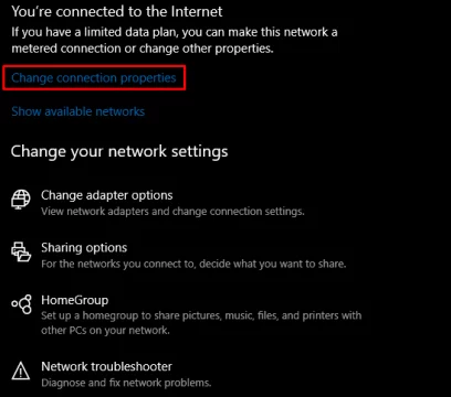 الخطوة الثالثة : إضغط علي خيارات الشبكة Network Properties .