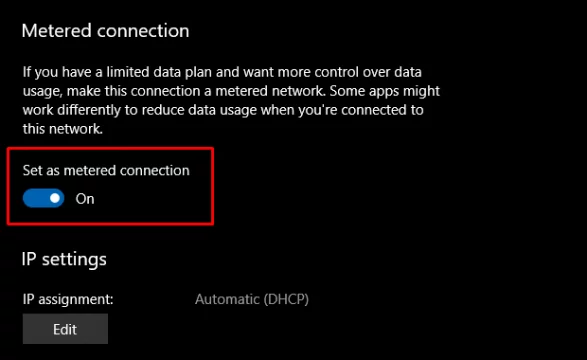الخطوة الرابعة : إضغط علي Metered Connection و قم بتفعيلها .