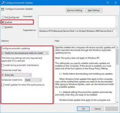 الخطوة السادسة :في الجزء الأيسر من الشاشة قم بالضغط علي خيار Enabled لكي يتم إيقاف التحديثات التلقائية .