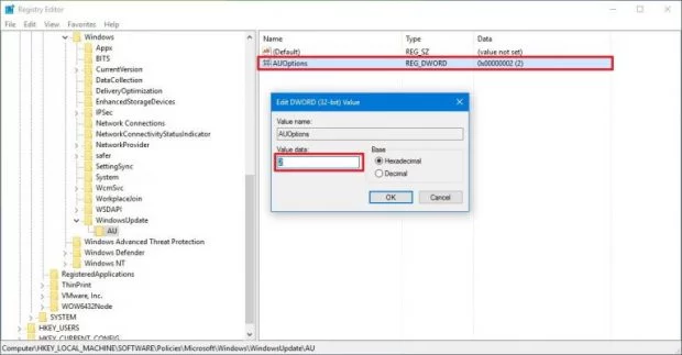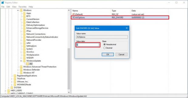 إيقاف التحديثات التلقائية من سجل الويندوز Registry :