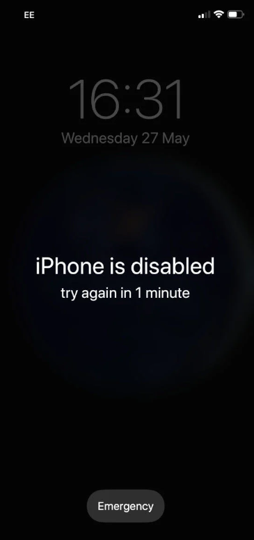 في حالة انه تم ايقاف الايفون و ظهرت لك رسالة تفيد ذلك “iPhone Is Disabled try again in 1 min”…