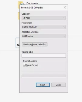 قم بتوصيل الهارد الخارجي التالف لجهاز الكمبيوتر الخاص بك و قم بالضغط على زر الماوس الايمن و ستظهر لك قائمة طويلة اختر منها Format و اضغط على Start .