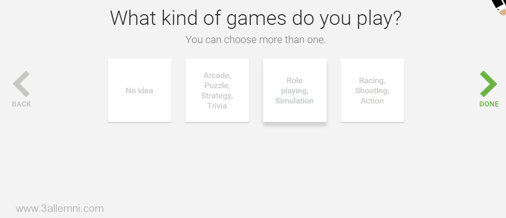 بعد ذلك سوف يطرح لك سؤالا اخر و هو نوع الالعاب التى تود ان تقوم بتشغيلها على الهاتف الذى تريد اختياره ليتوافق مع استخدماتك .