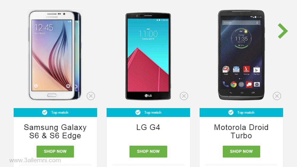 بعد ذلك سوف يطلب منك ان تقوم بادخال غرضين اخرين تود ان تستخدمها لكى يبدأ ان يقترح لك الهاتف المناسب و سوف يعطيك النتيجه التى تتوافق مع احتياجاتك
