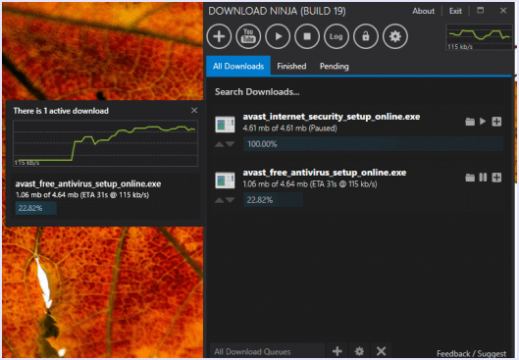 البرنامج يأتى مع واجهة مميزة لتسهيل التعامل معه و أيضا من مميزاته هى تجزءة الملفات لتسريع التحميل و هو أيضا يدعم ميزة الأيقاف المؤقت للتحميل و الأستكمال فى وقت لاحق