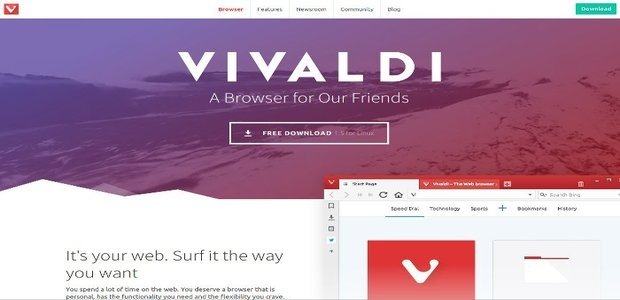 المتصفح الثالث هو متصفح “Vivaldi” والذى اضيف حديثا الى عائله متصفحات لينكس الافضل على الاطلاق فهو مبنى بشكل كبير على متصفح “Chromium” فهو يدعم المواقع التى تحتوى على “JavaScript” بشكل مُمتاز كما انه يدعم “HTML 5” بشكل احترافى وهو الشئ الذى لا يتوافر فى العديد من المتصفحات بشكل ملحوظ كما انه يدعم اجراء اوامر سريعه على المتصفح “Quick Commands” .