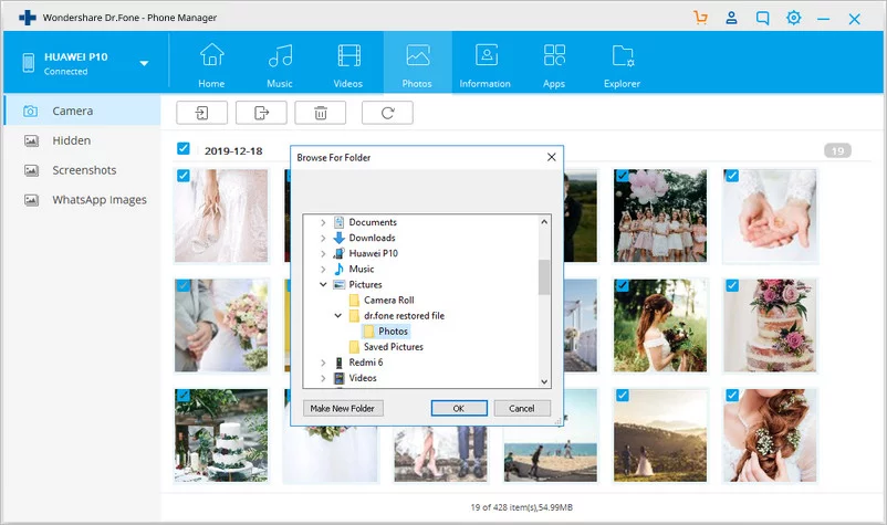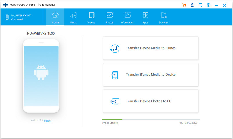 يعتبر Dr.Fone احد البرامج الرائعة التي تقوم بالعديد من المهمات مثل استعادة الملفات المحذوفة و نقل الملفات من الهاتف للكمبيوتر بسهولة و يمكنه نقل العديد من الملفات المتنوعة مثل الرسائل النصية و جهات الاتصال و ملفات البودكاست و الكتب الإلكترونية و غيرها من الملفات الصوتيه و مقاطع الفيديو و كذلك التطبيقات و يمكنك Dr.fone بسهوله من تخزين الملفات بعمل نسخه احتياطيه لها و متوافق مع انظمة اندرويد من 2.2 الى اندرويد 10.0 ، و يمكنك نقل الملفات من الهاتف للكمبيوتر من خلال اتباع الخطوات الاتية :