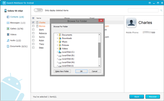 - قم بتمكين EaseUs لفحص ملفات هاتفك الاندرويد للعثور على جميع بيانات هاتفك .