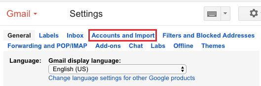 - من خلال نافذة الإعدادات أضغط علي تبويب Accounts & Import .