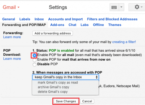 - في النافذة التالية قم بالضغط علي Enable POP For All Mail .