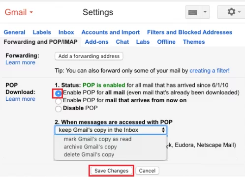 - تشغيل بروتكول POP في حساب الجيميل القديم .