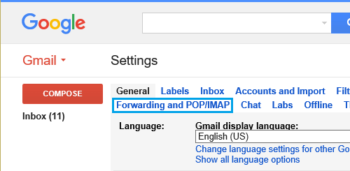 - من خلال الإعدادات قد بالضغط علي تبويب Forwarding & POP/IMAP .