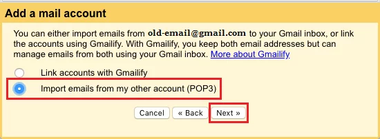 بمجرد تفعيل بروتكول POP فأن الخطوة التالية ستكون نقل البريد الإلكتروني القديم الي حساب جيميل الجديد و ذلك من خلال الخطوات التالية :